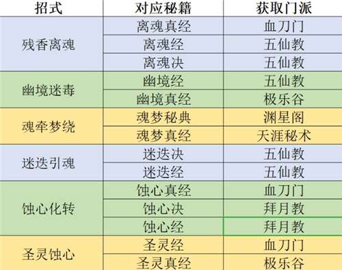 这些招式在对应门派中可获得,具体可参照上图。当出现用主动招式无法破防而卡图、橙色奇遇怪打不过的时候,可以考虑拿上述招式,会有奇效。