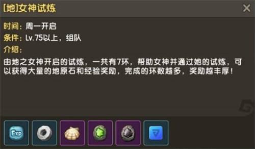 宝石的获取也非常轻松,有多种渠道可以选择。如果有时间,我们可以选择女神试炼活动来获取宝石,每周一,周二,周四,周五,都能够参加。女神试炼共有7环,帮助女神完成一系列任务就能够获得相当丰厚的奖励,不仅有宝石更有属性原石和经验奖励。