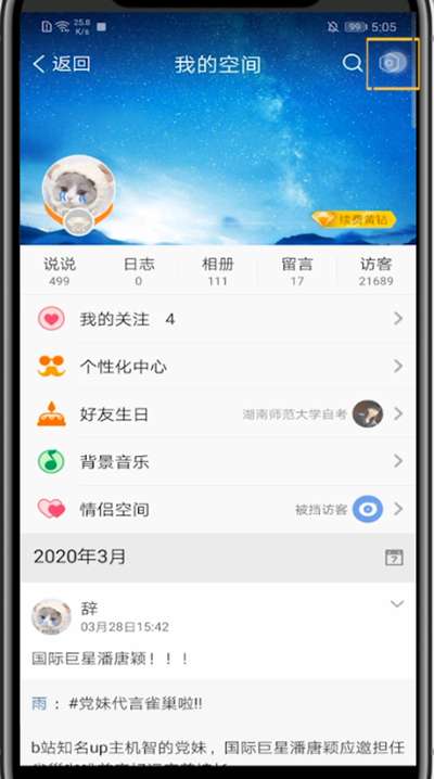 4、点击自己的空间