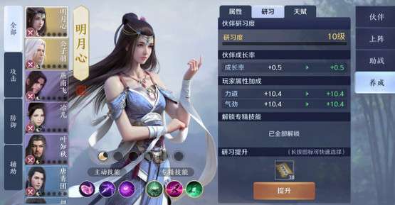 在天涯明月刀手游中玩家可以通过培养伙伴提升总体实力,伙伴可以通过研习提升等级,满级10级,研习需要消耗伙伴研习录,研习录获取方式也有很多,暂时不缺。