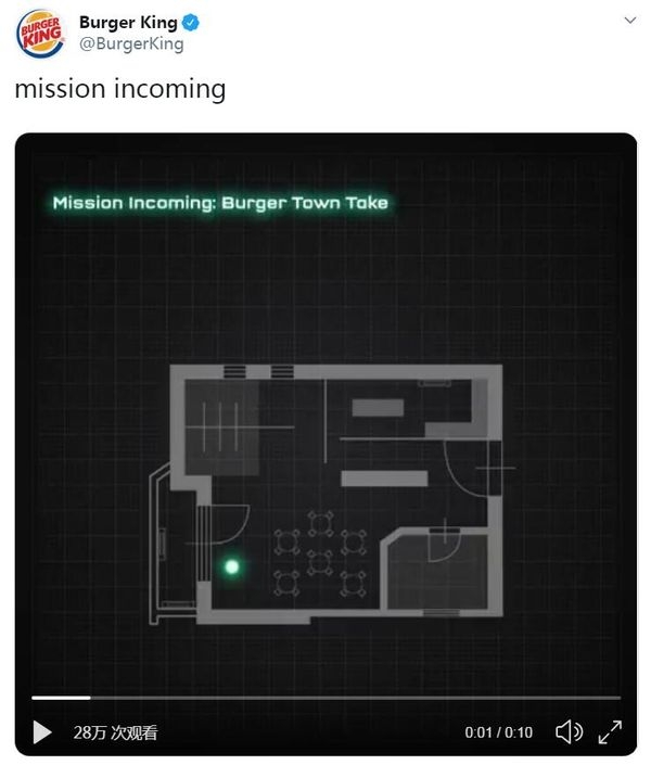 视频中展示了《使命召唤:现代战争》多人模式一张地图布局,可以看出这是一家典型的汉堡王餐厅布局。同时在视频右上角的任务目标写有“Burger Town Takeover”,Burger Town为过去《使命召唤》系列中一家虚构的餐厅,其设计就源于现实中的“Burger King”。此次联动,也算是双方对于这一老梗的正式回应。