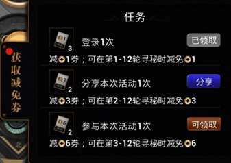 需要注意的是,不同数额的减免券,被限制在不同的轮数之后,才能使用。