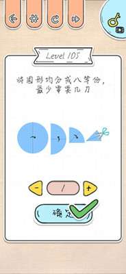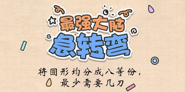 在最强大脑急转弯中,第105关的题目是“将圆形均分成八等份,最少需要几刀”,都是很简单的题目,只要不中圈套就好了,下面小编就来为大家介绍一下最强大脑急转弯第105关怎么过吧,一起来看看。