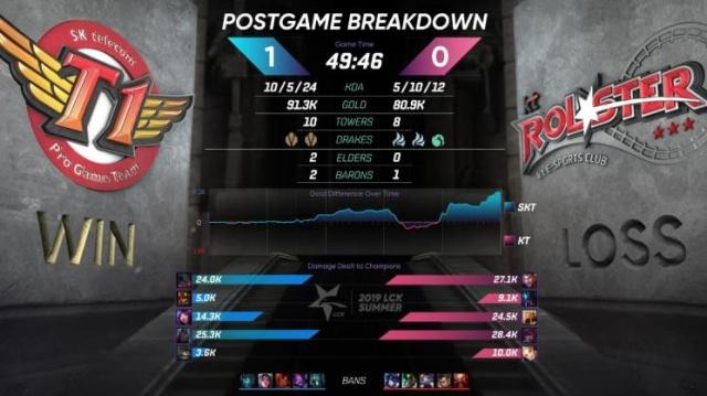 在这场比赛之前,本赛季SKT在红色方的比赛全部告负,就在这场比赛的第 2局时,部分网友都认为SKT可能又要重蹈覆辙,但是新上场的辅助选手表现十分给力。反观KT的5位成员表现一般,尤其是夏季的重磅引援Pray本场比赛表现不佳,第 二局BP时他的表情也十分严肃,终KT也是不敌SKT。