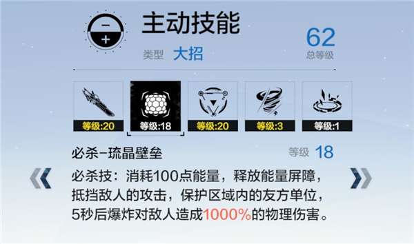 必杀技--七实·风暴必杀技在功能上与其他构造体的必杀技有很明显的区别,是现时唯一具有绝对防御功能同时具一定伤害的必杀技,大招范围内保护友方单位,5秒和爆炸对送人造成1000%的物理伤害。图~~