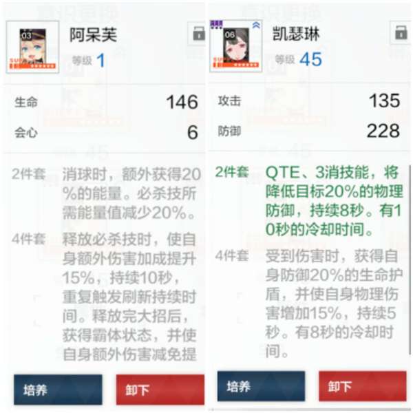 意识推荐使用4凯瑟琳2阿呆芙,凯瑟琳的减抗和对自身的增伤还有护盾等等都是协同作战中必不可少的