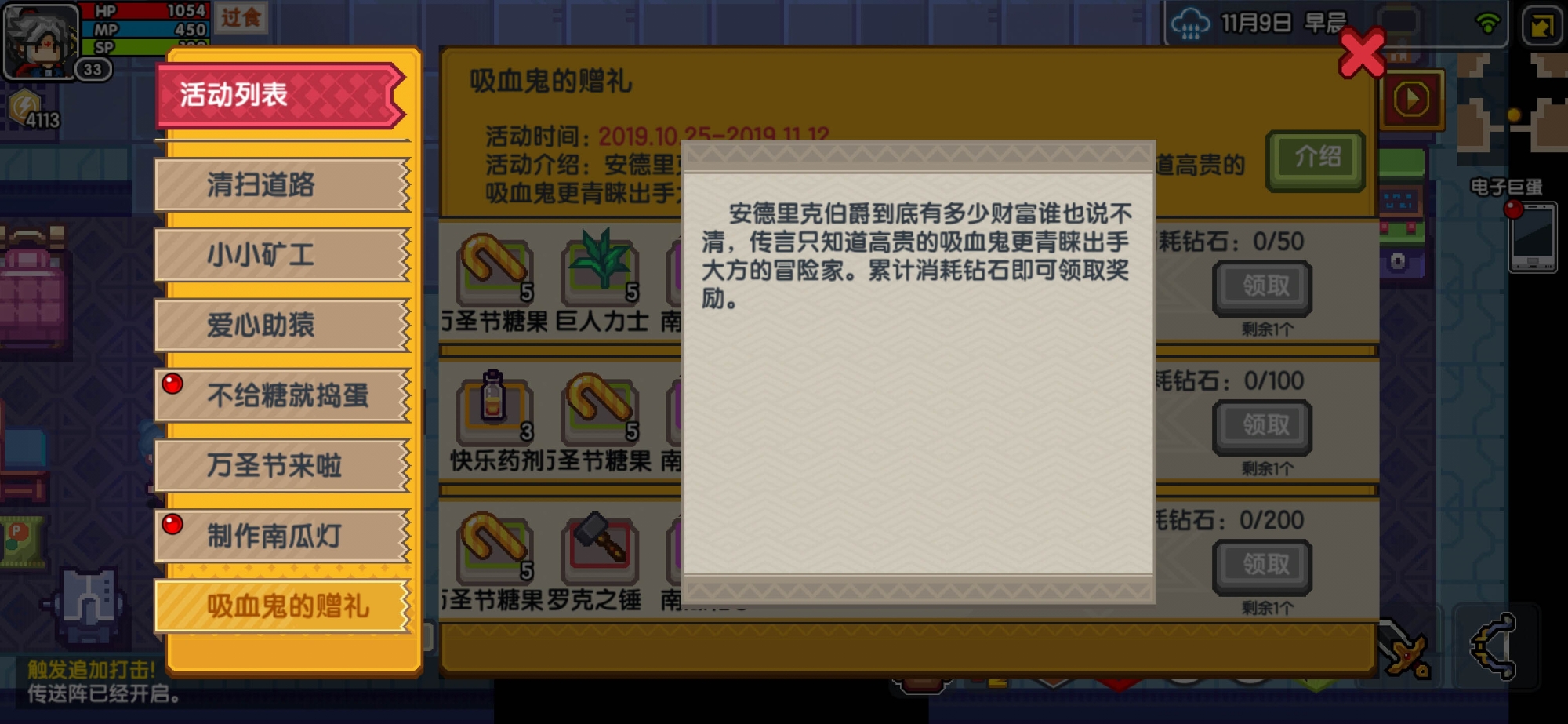这次的活动也是高贵的吸血鬼安德里克伯爵非常青睐出手大方的冒险家——