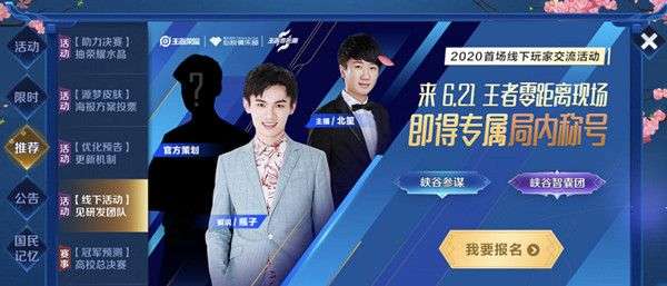 那就赶紧报名参加2020首场线下玩家交流活动——6.21“王者零距离”吧~