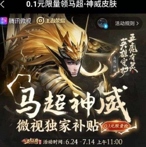 王者荣耀0.1元抢马超神威皮肤怎么参与,王者荣耀的老玩家都知道了,一旦有重大系列皮肤出现,都会出现0.1元限量抢购,最近马超神威皮肤也推出了这个活动,下面和小编一起来看看王者荣耀微视0.1元抢马超神威皮肤参与方法。