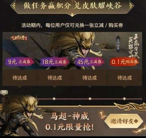 王者荣耀0.1元抢马超神威皮肤怎么参与?0.1元抢马超神威皮肤参与方法