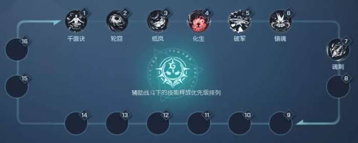 化生流连招:千面诀—轮回—纸岚—化生—破军—镇魂—(魂刺—破军—镇魂—魂刺循环)。