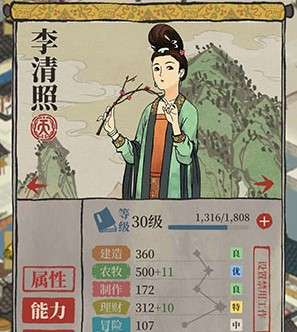 首先看下李清照的天赋,可以发现,她在负责理财工作的时候,可以将收入提升50%,然后还可以减少1个工人的需求。