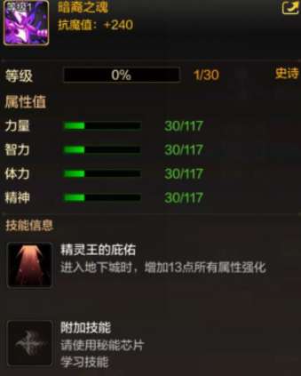 精灵王的庇佑:进入地下城时,增加13点所有属性强化
