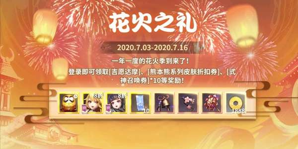 登录即可领取吉愿达摩(限时)、2张8折熊本熊联动系列皮肤折扣券(可与上架折扣叠加使用,享折上折)、式神券、高级澄心值道具等奖励