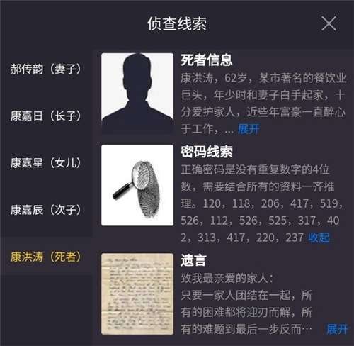 死者信息以及密码线索: