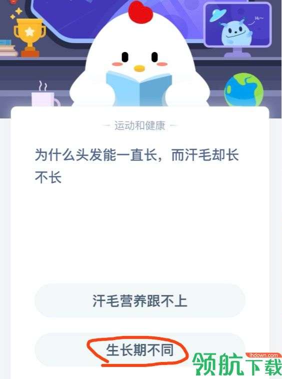 今天蚂蚁庄园每日一答得题目是“为什么头发能一直长而汗毛却长不长”下面小编为大家带来今日份答案,每日持续更新,欢迎大家继续关注我们!