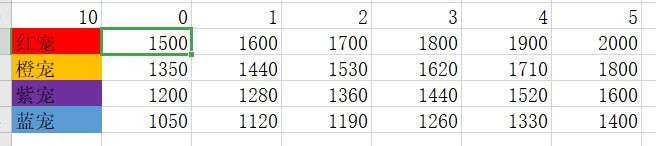 7.宠物的战力简单对比,图为十级宠物战斗力数据,主要是为了配合第五条。