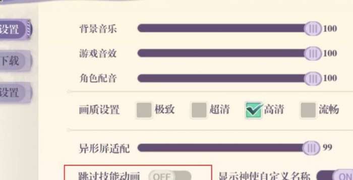 5、点击OFF按钮即可关闭技能过场动画。