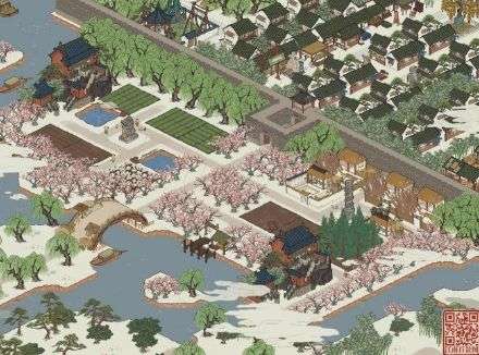 本攻略在宝塔前建了一个大广场,广场上有池塘,花坛,金鱼池装饰,在广场上方规划了医馆区域,丹丸和医馆等医疗设施都放在这里。