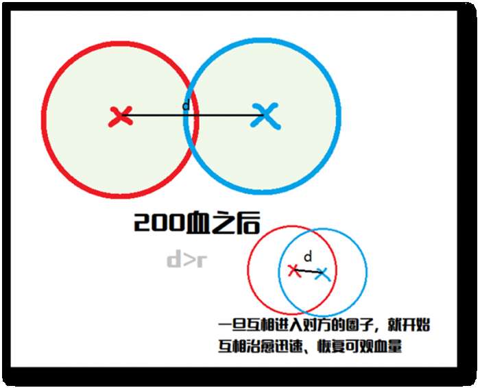 1、200血之前,保持两人距离,在两圈重叠范围紧密集火输出;