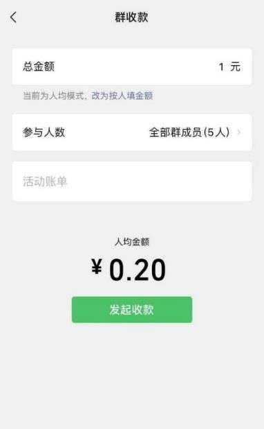 4、输入金额后会显示人均收款金额,再点击“发起收款”。