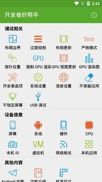 开发者好帮手能够用来快速调试应用以及查看手机软硬件相关信息。包括:1. 快速打开或关闭开发者选项中的选项。将原来几十秒的操作缩短为一次点击。包括显示布局边界、显示 GPU 过度绘制、显示布局更新、强制 GPU 渲染、显示 GPU 视图更新、显示 GPU 呈现模式、显示指针位置、严格模式、不保留活动、不锁定屏幕、正在运行的服务、系统界面调节。 以上就是PK手游网小星为大家推荐开发APP的全部内容了,更多手机教程敬请关注PK手游网,为您带来更多更好玩的手机小技巧。