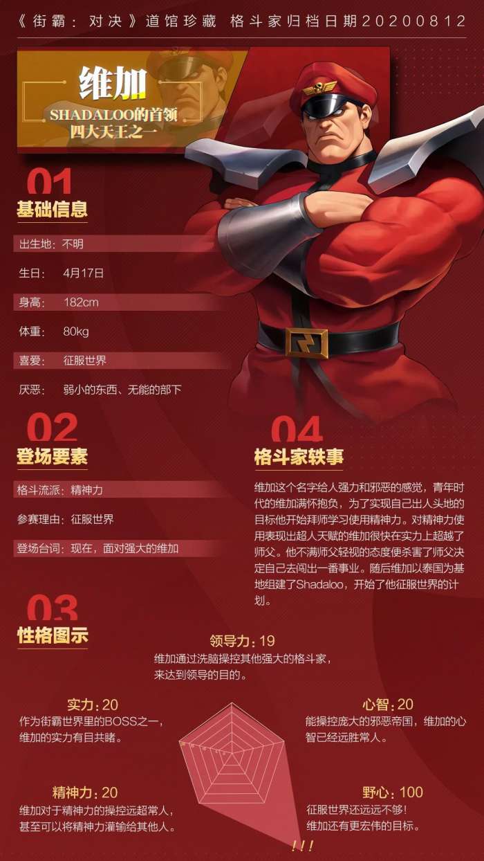街霸对决手游中很多小伙伴不知道维加背景及玩法、技能,也不清楚维加的玩法是什么,今天小编带着大家了解一下街霸对决维加评测;