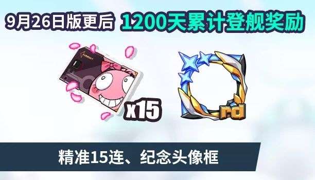 9月26日版更后,【登录授勋】活动将进行拓展,新增1200天累计登舰奖励。