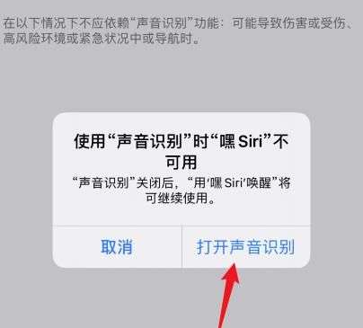 5、点击后,在弹出的提示内,选择打开声音识别。