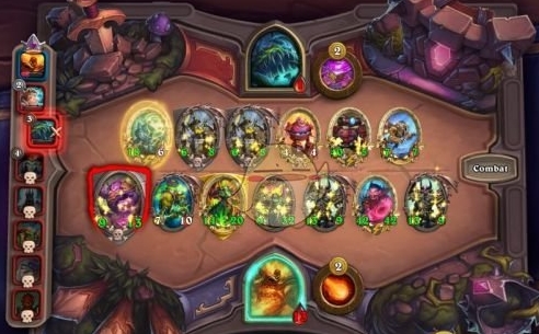 在战斗阶段中,你的随从才会攻击对手的随从,反之亦然。你总是先由最左边的随从发起攻击,随机攻击对手的随从,除非对手拥有嘲讽随从,嘲讽随从总是优先被攻击。然后,对手最左边的随从会随机攻击你的随从,以此类推。