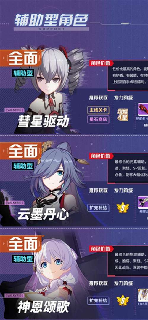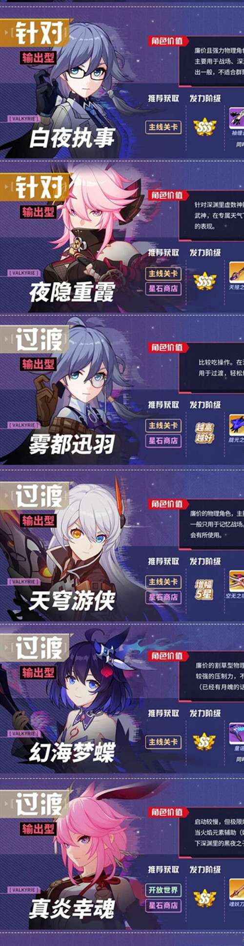 过渡:主要作为强力角色的优秀下位替代选择,通常可以较为廉价的培养与获取。