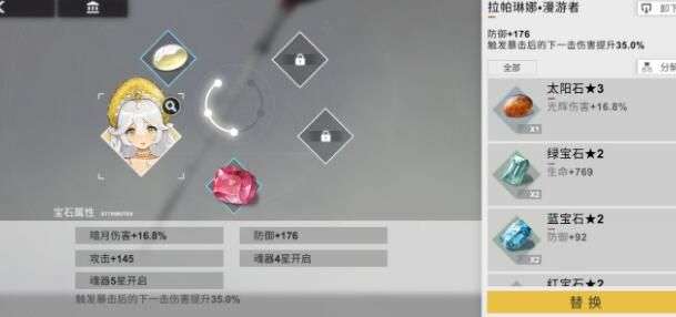 漫游者:帕拉琳娜·漫游者,属性为生命,效果为暴击后伤害增幅,目前唯一一个伤害特化宝石姬,也是我莉莉丝一直在用的宝石姬,配合莉莉丝的高连击可以轻松打出暴击来触发该宝石姬效果,获取途径主要为第一章的DP宝箱