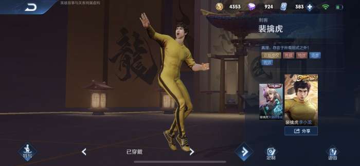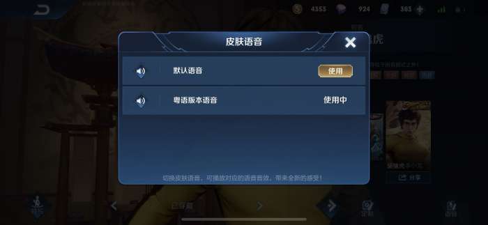 总而言之,李小龙的粤语语音包,要在皮肤选择界面那里设置,首次切换这种皮肤语音的确难找。