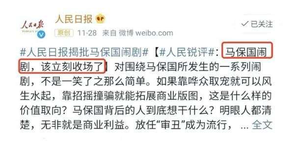 《人民日报》可是中国对外文化的重要窗口,人民日报在客户端发文《马宝国闹剧,该立刻收场了》,被关注的马保国也是时候离场。