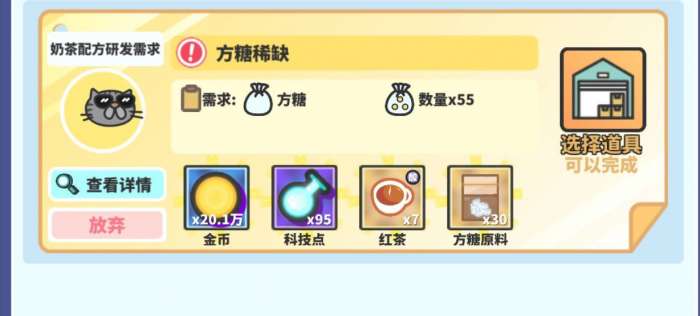 配方还要求口味等级 前期不建议提交 等到不缺资源加上把工作台开满就可以制作配方并提交