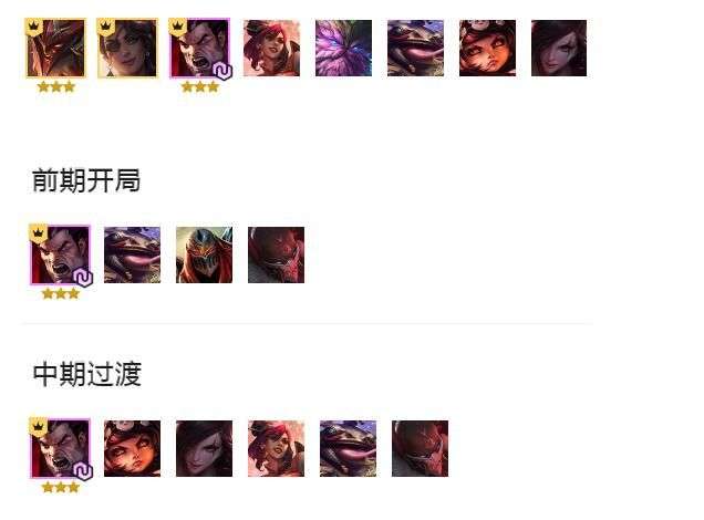 不过这个阵容过度依赖前期不能掉血,不然这个阵容在中期就会暴毙的,中期是会掉大血的,最好是在2-1的时候就拉4人口,然后在2-3拉五人口去白嫖,然后去保住连胜存钱,如果没有连胜的话,最好是选择换个阵容打,没有必要头铁,在过度的时候转阵容还是比较容易的。