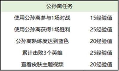 完成年货采购后,完成指定任务即可获取经验,累积到100经验值时即可解锁升级任务奖励。每个英雄的任务及可获取经验值详见下表:
