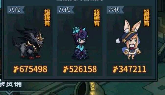 绝对主力:狮子,(狮子的无视防御非常有用而且力量成长属性也高)8代狮子比9代超觉醒兔子(同样装备下)面板攻击要高出8000左右,狮子技能带能提升伤害的,最好能弄本攻击倍率较高的技能
