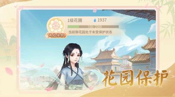 在花圃左上角可以开启保护,选择消耗花露和消耗元宝;