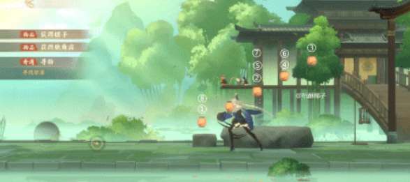 11.然后点击灯笼再次演奏,顺序: 1-3-5-4-3-4-3-1获得商音和徵音琴弦,进入幻境,在嵇康面前的石块上获得琴弦,在拱桥左边的柱子那获得琴弦,在竹林获得最后一个琴弦;