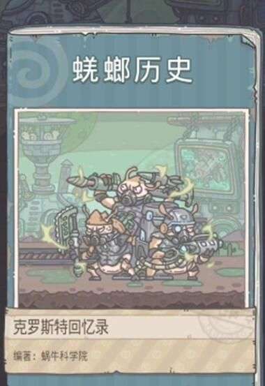 蜗爷们在获得蜣螂图超级变异体胚胎后,通过精密研究后,解析出蜣螂族第四任元首-克罗斯特的生前回忆,在一番罗列整理形成一本小册子,现在就让蜗们一同走进他与蜣螂族的历史长河中观摩!