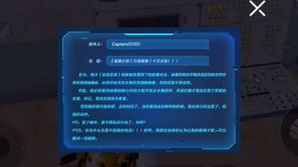 玩家们可以从中得知一个所谓的星盾计划。计划因为黑客的病毒攻击而中止了,玩家们前往大核电站二楼中间的屋子可以找到消灭病毒的软件,带回密码房里可以进行杀毒,但是后续还没有看到更多剧情。