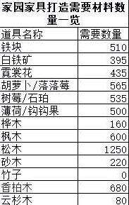 首先家园中的家具都是需要我们自己收集材料来制作的,这些材料的来源全部来自大世界的地图中,下面是预计的材料消耗,可以看的出来还是非常肝的。
