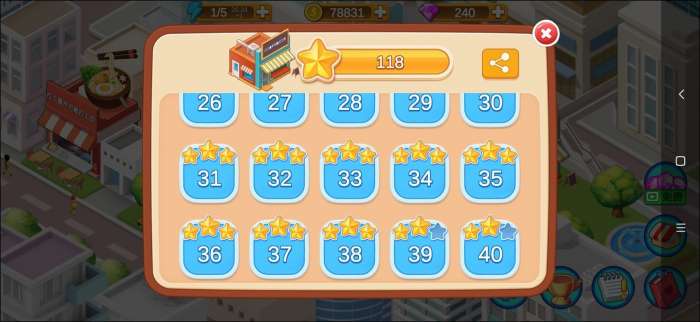每一关需要做的食物好像是固定的,所以实在拿不到三星的关可以背板(我没用过,只是在刷金币的时候发现的)。