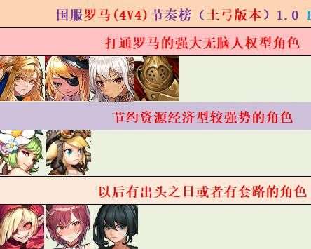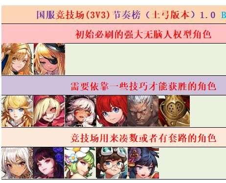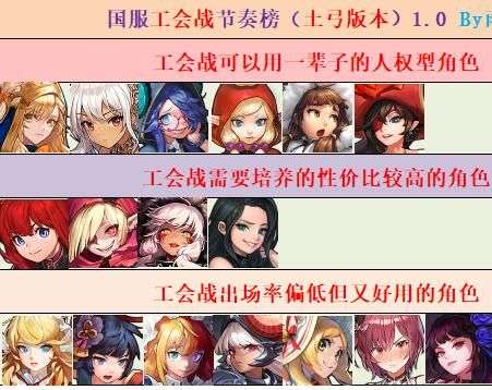 这次为大家带来了国服公测第一个版本的节奏榜,以后国服每个版本维护前都会更新,因为是一图流格式为了方便玩家之间互相传阅,所以并不包含详细评测,有不懂的地方可以在本帖给我留言,我另外的帖子里会有角色较详细的评测,点我头像查询我发布过的帖子就可以找到。节奏榜这种东西会包含作者的个人主观评测内容,并且随着版本的变动,部分角色会有较大的差距变化影响,因此请大家理解,多多包涵。