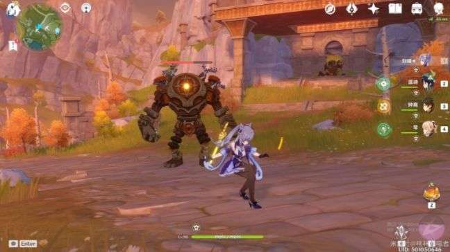 先用甘雨3箭蓄力,可以看到几乎没给能量。用甘雨一直普攻把小宝打到差不多的血量。