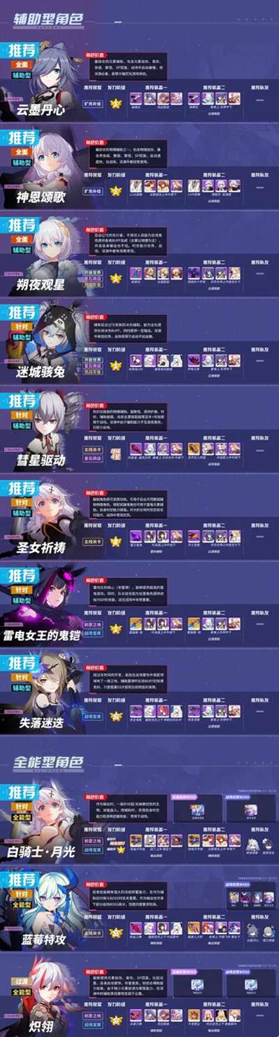 辅助型及全能型角色推荐强度排行榜: