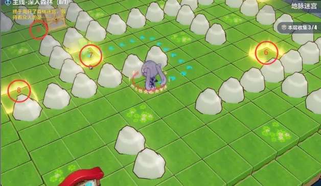 接上图原路返回后按顺序踩机关,即可拿到宝箱道具,迷宫内的内容我们就拿完了。