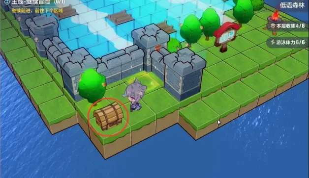 第三层跟着剧情走即可,拿完树莓传送到下面拿宝箱,游泳时稍微计算体力就行。