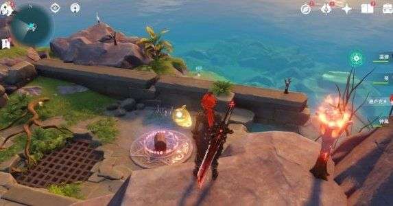 1、首先我们来到危危岛左边的这个小岛屿,发现上面有火把阵和一个宝箱。